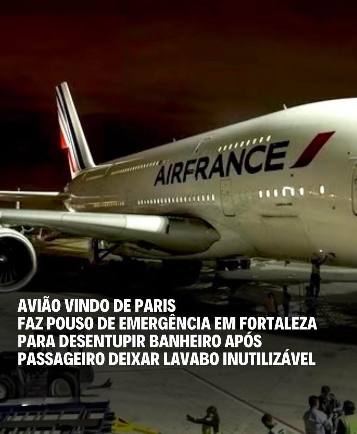 Um voo proveniente de Paris enfrentou uma situação inusitada que resultou em um pouso não programado em Fortaleza. De acordo com informações, um passageiro utilizou o banheiro da aeronave de forma inadequada, causando entupimento e espalhando odores desagradáveis pela cabine. Diante da situação, a tripulação decidiu realizar o pouso para solucionar o problema.